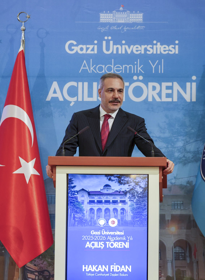 Dışişleri Bakanı Hakan Fidan, Gazi Üniversitesi'nde 2025-2026 akademik yılı açılış törenine katıldı. Konuşmasında Gazze'de sağlanan ateşkesten memnun olduklarını söyleyen Fidan, ateşkesin takipçisi olacaklarını belirtti. Suriye'de yaşananlara da değinen Bakan Fidan, Suriye'nin önünde bir fırsat olduğunu ve bu fırsatı İsrail'in heba etmesine müsaade etmeyeceklerini söyledi.
