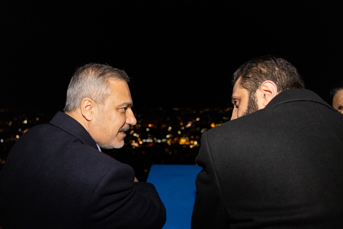 Dışişleri Bakanı Hakan Fidan ve Suriye'deki yeni yönetimin lideri Ahmed eş-Şera, Suriye'deki Kasyun Dağı'nda Şam manzarasını çay içerek izledi.