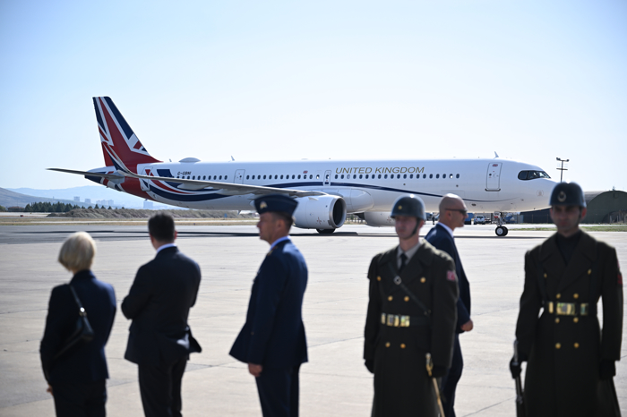 Starmer'in beraberinde, İngiltere Savunma Bakanı John Healey ve İngiltere Hava Kuvvetleri Komutanı Orgeneral Harv Smyth de yer aldı.