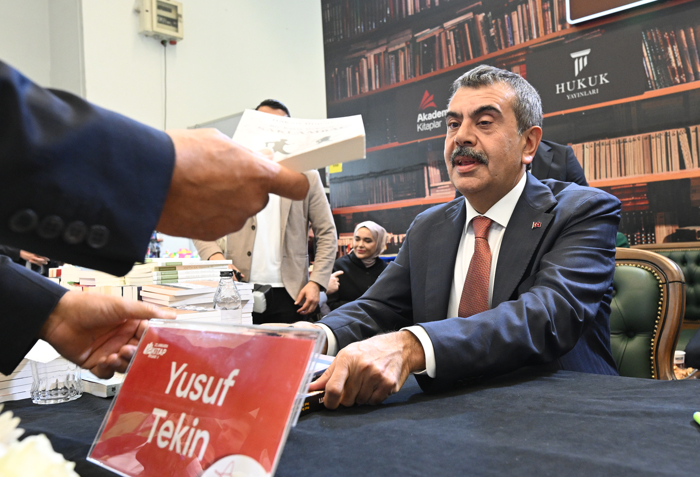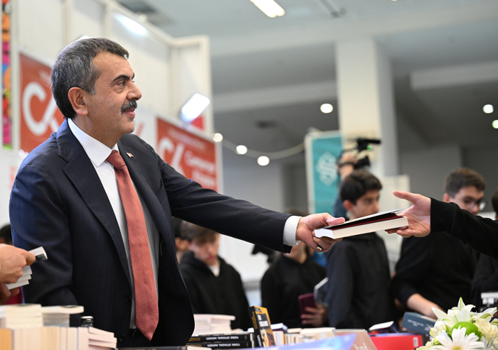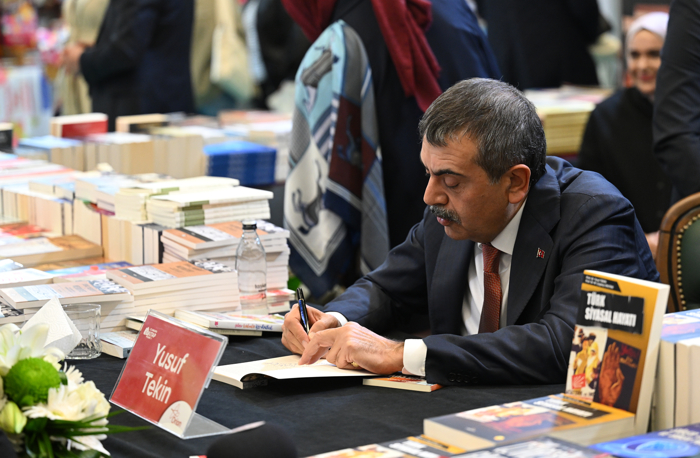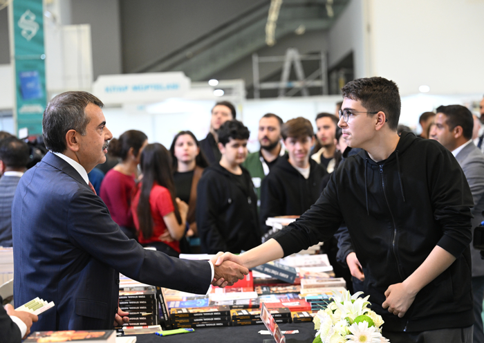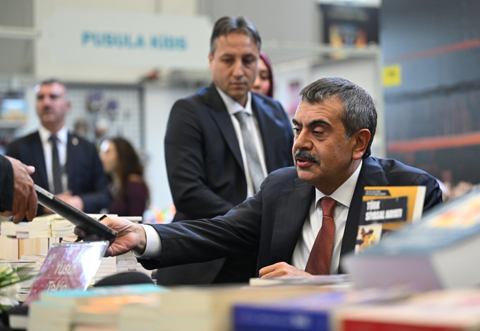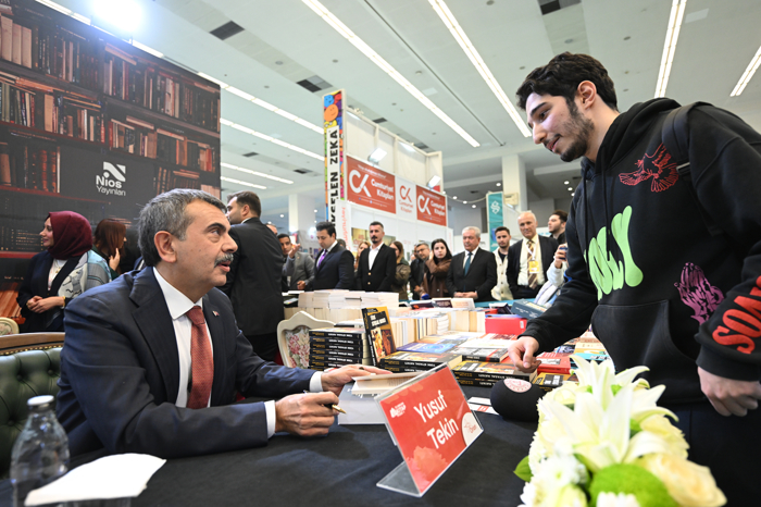 Bakan Tekin, ATO Congresium'da bu yıl 22'ncisi düzenlenen Ankara Kitap Fuarı'nı ziyaret etti. Fuardaki stantları dolaşan Tekin, buradaki öğrencilerle bir araya gelerek fotoğraf çektirdi.