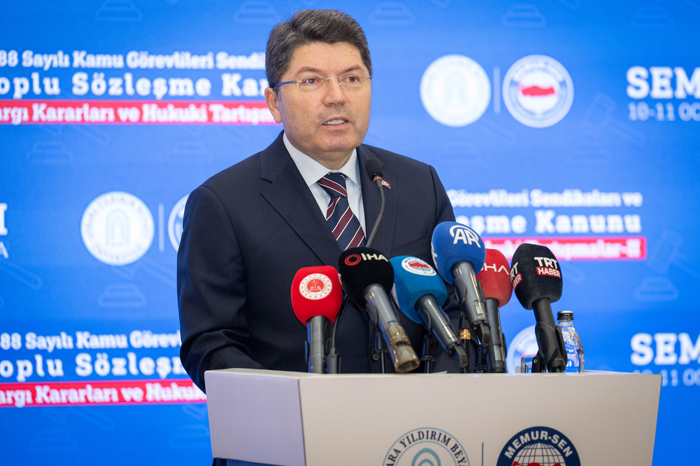 Memur-Sen'in toplu sözleşme sempozyumunda konuşan Adalet Bakanı Yılmaz Tunç, CHP Genel Başkanı Özgür Özel'in Türkiye'yi Batı'ya şikayet etmesine tepki gösterdi.