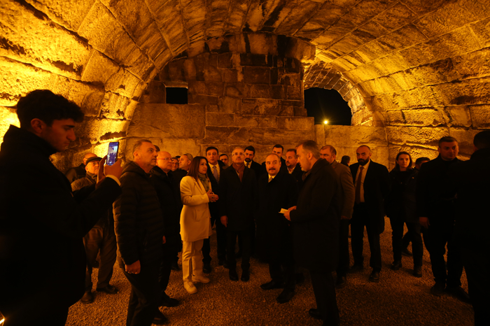 "Mesela buradaki iç içe giren kemerlerin nasıl kesiştiğini ve düz bir arazide nasıl tonozlarla bir yapının yükseltildiğini gerçekten çok hoşuma giderek gördüm ve çok da mutlu oldum. Bu eserin ortaya çıkarılması bir gayretin, bir ilginin sonucudur. Artık ülkemizde biz sadece insanları ulaştırmıyoruz, sadece seyahat ettirmiyoruz, gerçekten her dönemde olan, ülkemizin, vatanımızın, topraklarımızın tarihine de geçmişine de sahip çıkıyoruz. Özellikle 2017 yılından bu tarafa Alinur Aktaş başkanımız sağ olsun, sadece insana dokunmamış, sadece onları ulaştırmamış, tarihe de dokunmuş, bu eserin gün yüzüne çıkmasına ciddi katkı sağlamış. Ben o anlamda da kendisine teşekkür ediyorum."