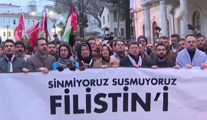 Adalet Bakanı Yılmaz Tunç, Sağlık Bakanı Kemal Memişoğlu, Tarım ve Orman Bakanı İbrahim Yumaklı, Gençlik ve Spor Bakanı Osman Aşkın Bak, Ulaştırma ve Altyapı Bakanı Abdulkadir Uraloğlu, AK Parti Genel Başkan Yardımcısı Hasan Basri Yalçın ve TBMM Bayındırlık, İmar, Ulaştırma ve Turizm Komisyonu Başkanı Adil Karaismailoğlu beraberindeki kalabalık pankartlarla Filistin için Galata Köprüsü'ne gitmek üzere yürüyüşe geçti.