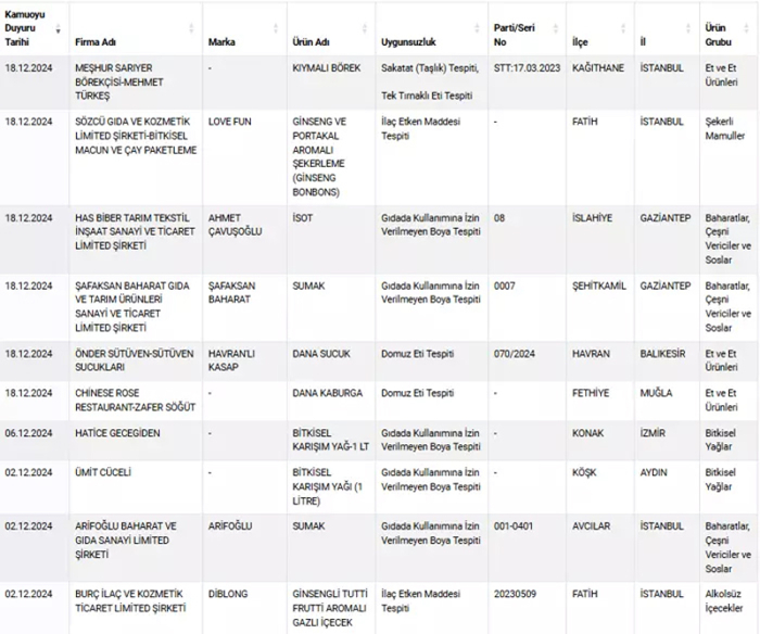 Tarım ve Orman Bakanlığı taklit-tağşiş ürünler listesini güncellendi. Bakanlık sağlığı tehlikeye düşürecek gıdalar listesine bazı markların sattığı ürünleri de ekledi. Bakanlığın tespitine göre, söz konusu markların sucuklarında domuz eti çıktı.