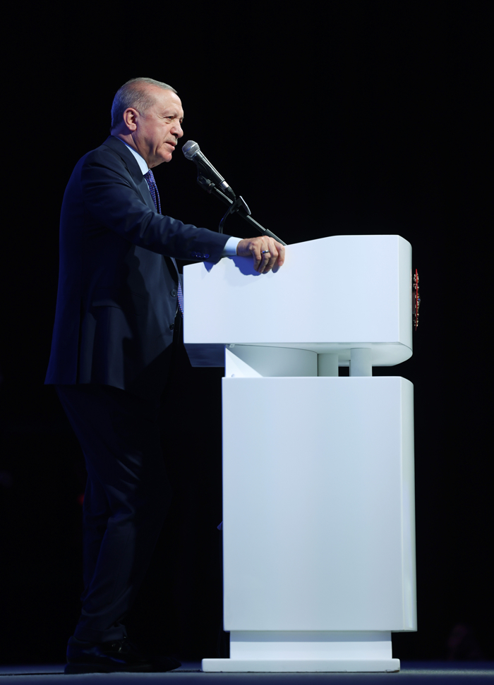 Kendilerini muhabbetle bağrına basan, coşkusuyla ümitlendiren, enerjisiyle güçlendiren genç kardeşlerine canı gönülden teşekkür eden Erdoğan, programa teşrif eden gurur ve sevinçlerine ortak olan misafirlere ise "Hoş geldiniz, sefalar getirdiniz." diye seslendi.
