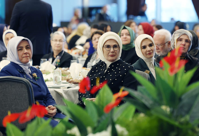 Başkan Recep Tayyip Erdoğan'ın eşi Emine Erdoğan, "Bugün hala kadınların kılık kıyafeti yüzünden hakir görüldüğüne, bir kadının değerinin dış görünüşüyle ölçülmeye çalışıldığına, batılı bir imaj taşımayan her kadının çağdışı sayıldığına üzülerek şahit oluyoruz. Demek ki hala mücadele etmemiz, aşmamız gereken bir ön yargı bariyeri var. O halde bizler daha çok çalışacağız." dedi.