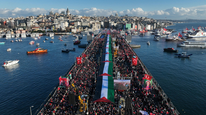 İstanbul'da düzenlenen "Büyük Gazze Yürüyüşü" dünya gündemindeki yerini koruyor. Yabancı basın kuruluşları, Galata Köprüsü'nde toplanan yüz binlerce kişinin Filistin için yaptığı özgürlük çağrısını manşetlerine taşıdı.