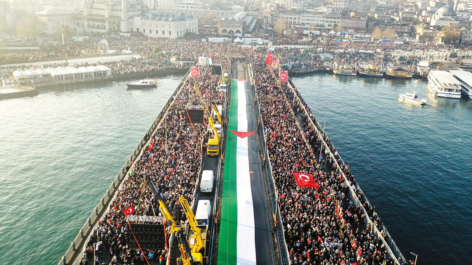 1 Ocak'ta Galata Köprüsü'nde düzenlenen ve 520 bin kişinin katıldığı Büyük Gazze Yürüyüşü, dünya basınında geniş yankı uyandırdı. Filistin'deki katliama dur demek için sabahın erken saatlerinde alana gelen yüz binlerce kişiyi manşetlerine taşıyan ABD basını, mitingde dalgalanan bayraklar eşliğinde 'Sessiz kalmayacağız, Filistin'i unutmayacağız' sloganlarının İstanbul semalarında yankılandığını yazdı.