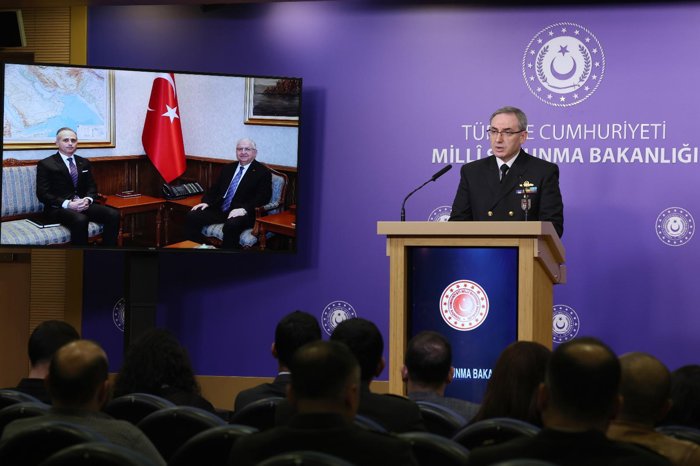 MSB Basın ve Halkla İlişkiler Müşaviri ve Bakanlık Sözcüsü Tuğamiral Zeki Aktürk, bakanlıkta düzenlenen haftalık basın bilgilendirme toplantısında konuştu.