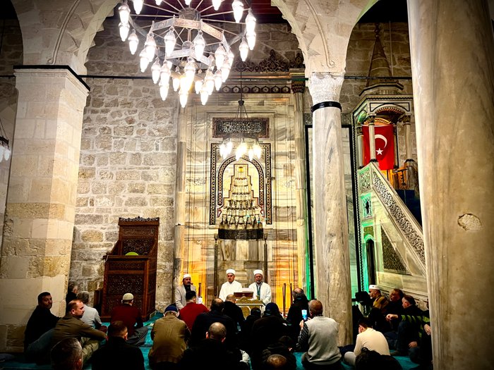 Binlerce kişinin yoğunluk oluşturduğu Ulu Cami'de teravih namazı kılındı.