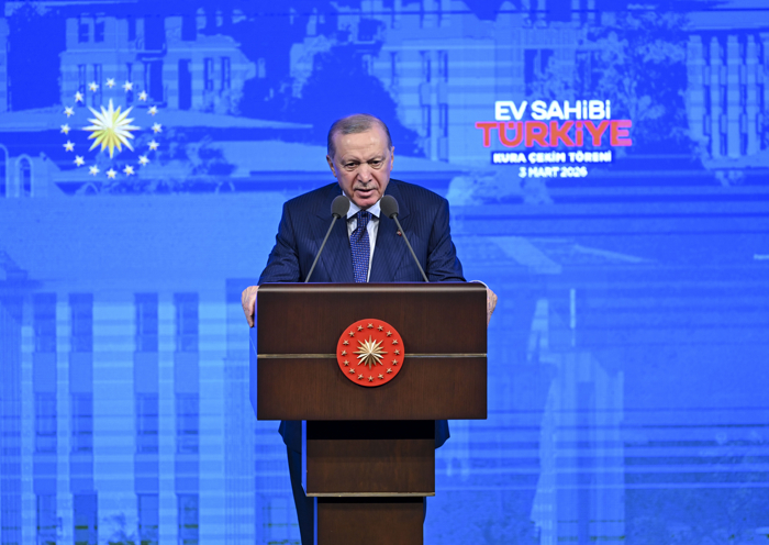 Beştepe Millet Kongre ve Kültür Merkezi'nde 'Ev Sahibi Türkiye-Ankara 31 bin 73 Konut Kura Çekim Töreni'nde konuşan Başkan Erdoğan, 'Afganistan ile Pakistan arasındaki çatışmalara İran'a karşı düzenlenen hava harekatı eklendi. Kardeş ülkelere yönelik drone ve kamikaze saldırıları da istikrarsızlığı derinleştirdi. Ülkemizi bu tehlikelerden uzak tutmak için tüm önlemleri alıyoruz. Ateş daha fazla yayılmadan, kardeş ülkeler arasına daha fazla husumet girmeden tüm imkanlarımızı seferber ettik.'dedi.