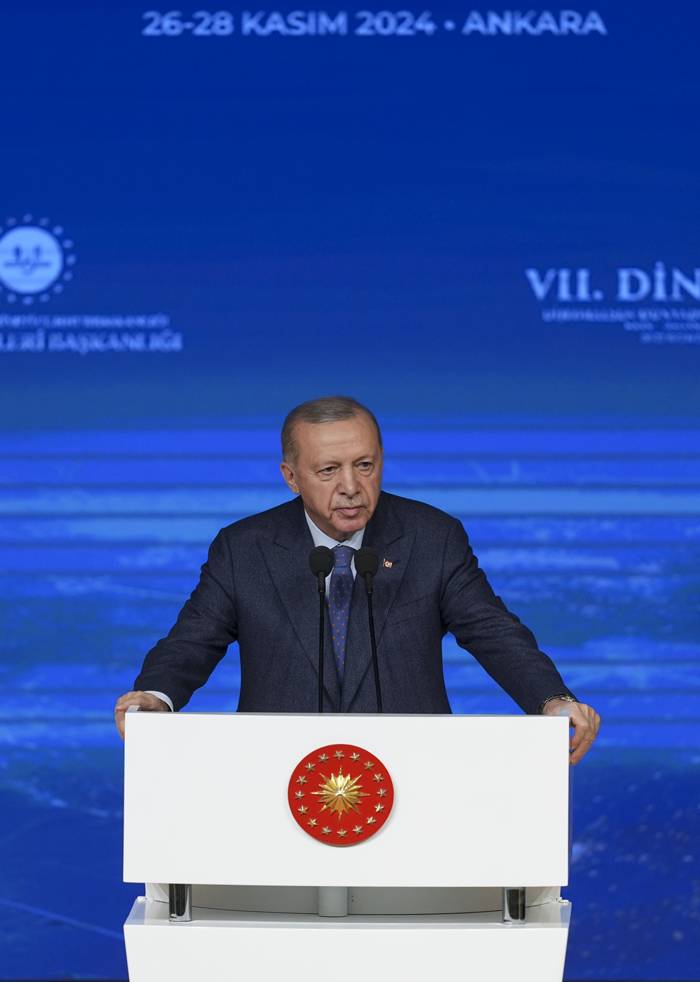 Erdoğan, Diyanet İşleri Başkanlığı Konferans Salonu'nda düzenlenen 7. Din Şurası'nda yaptığı konuşmada, Şura'nın birlik, beraberlik, muhabbet ve kardeşlik ruhunu tazelemesini, güçlendirmesini diledi.