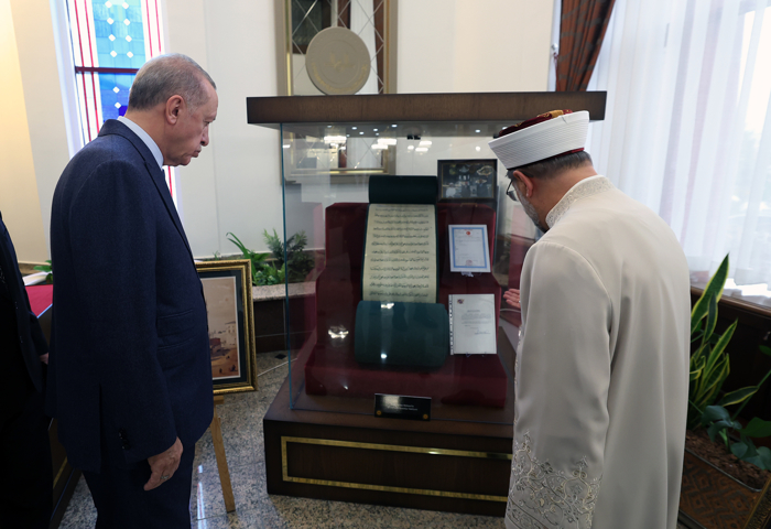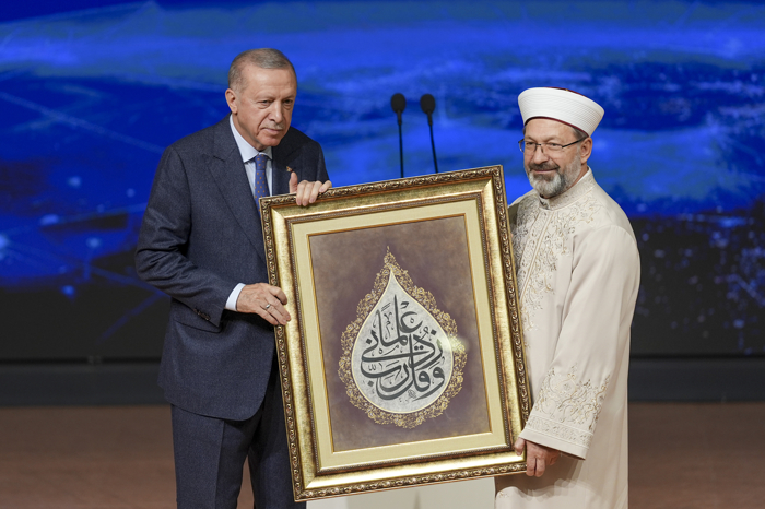 Diyanet İşleri Başkanı Ali Erbaş, günün anısına Cumhurbaşkanı Erdoğan'a, üzerinde "Allah'ım, ilmimi ziyadeleştir" duasının yer aldığı Arapça hat tablosu hediye etti.