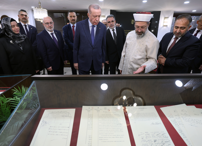 Erdoğan, daha sonra "3 Mart 1924, Kuruluşundan Günümüze Diyanet İşleri Başkanlığı" adlı sergiyi gezdi ve Erbaş'tan sergiye ilişkin bilgi aldı.