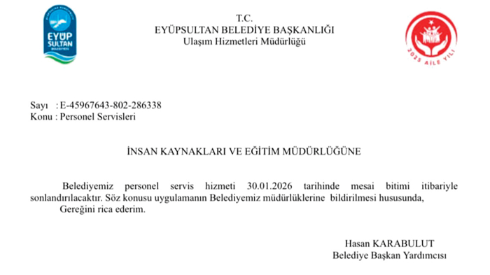 CHP'li Eyüpsultan Belediye Başkanı M. Bülent Özmen, personelin yemek ve servis haklarının 30 Ocak itibarıyla kaldırılmasına karar verdi. AK Parti İlçe Başkanı Muhammet Vanlıoğlu, “Eyüpsultan'da beceriksiz yönetim yanlış uygulamalarının bedelini emekçiye ödetiyor” dedi.