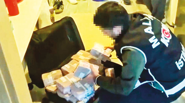 Şüphelilerin adreslerinde yapılan aramalarda valiz içerisinde balya balya paralar ele geçirilmişti.