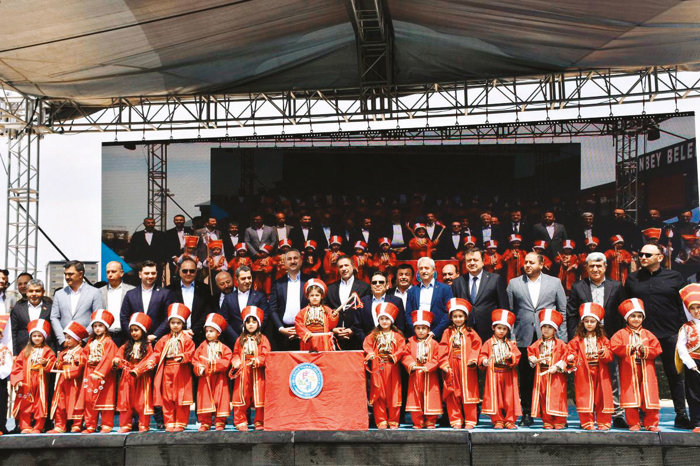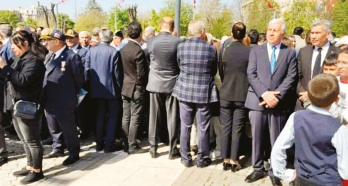 Gaziantep'te düzenlenen 23 Nisan gösterilerinde CHP'li il yönetiminin sırtını döndüğü ana sınıfı öğrencilerinden oluşan mehteran takımı, Şahinbey Er Meydanı'nda sahne aldı.