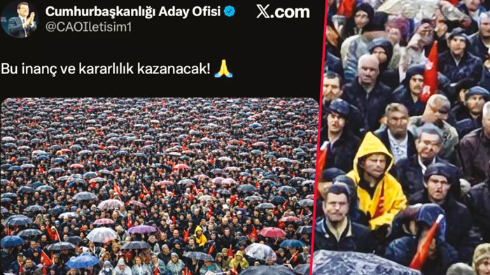 Çanakkale mitingine ait yapay zekayla çoğaltılmış insanlardan oluşan bir fotoğraf paylaşıldı; altına da "Bu inanç ve kararlılık kazanacak" notu düşüldü. Vatandaşların yüzündeki bozulmadan sahtekarlık anlaşıldı. CHP'lilerin dahi tepki gösterdiği paylaşım kaldırılmadı.