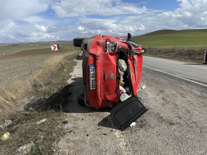 Çorum'da devrilen otomobildeki 3 kişi yaralandı