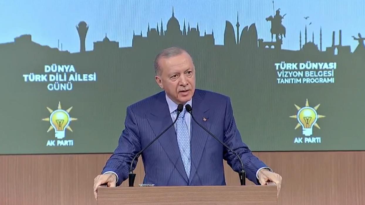 Erdoğan, AK Parti Kongre Merkezi'nde düzenlenen "AK Parti Türk Dünyası Vizyon Belgesi Tanıtım Programı"na katıldı.