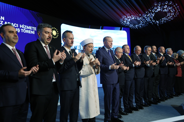 Cumhurbaşkanı Erdoğan ve beraberindekiler, Diyanet İşleri Başkanı Safi Arpaguş'un yaptığı duanın ardından kurdele kesti.
