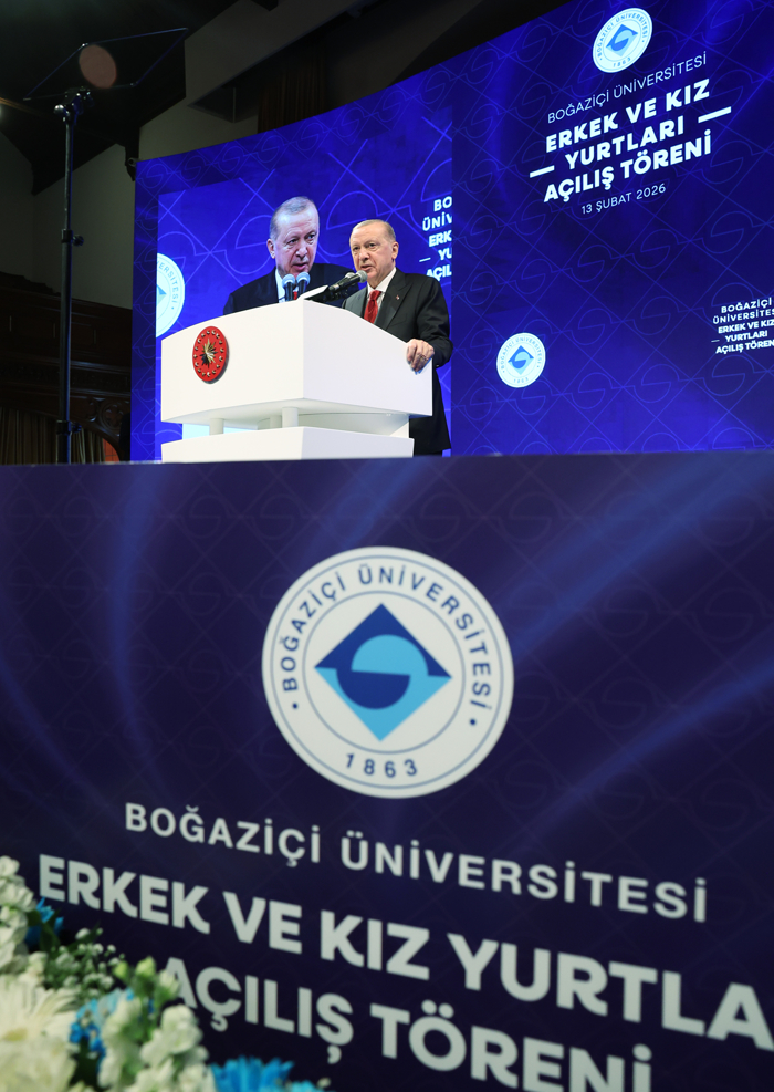 Cumhurbaşkanı Erdoğan, Boğaziçi Üniversitesi Erkek ve Kız Yurtları Açılış Töreni'nde yaptığı konuşmada, bu anlamlı açılış töreni münasebetiyle katılımcılarla beraber olmaktan büyük bir bahtiyarlık duyduğunu dile getirerek programa katılan misafirlere, gençlere ve öğrencilere teşekkür etti.