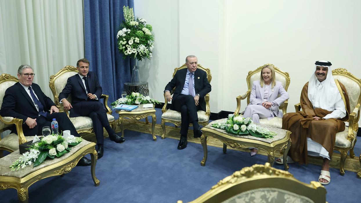 Başkan Erdoğan, Barış için Şarm El-Şeyh Zirvesi” vesilesiyle bulunduğu Mısır'da Birleşik Arap Emirlikleri Veliaht Prensi Mansur bin Zayed El Nahyan, Fransa Cumhurbaşkanı Emmanuel Macron, Birleşik Krallık Başbakanı Keir Starmer, İtalya Başbakanı Giorgia Meloni ve Katar Emiri Şeyh Temim bin Hamed Al Sani ile bir araya geldi.