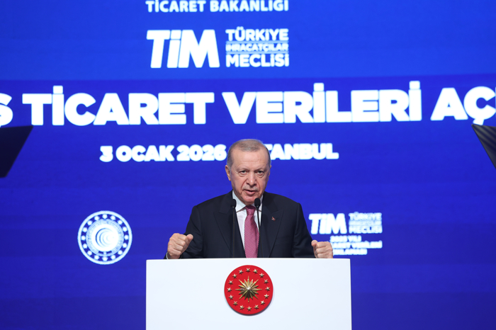 Cumhurbaşkanı Erdoğan, İstanbul Kongre Merkezi'nde düzenlenen "2025 Yılı İhracat Rakamlarının Açıklanması Programı"nda yaptığı konuşmada, Türk ürünlerini dünyanın dört bir köşesine ulaştıran, mal ve hizmetler ihracatını artırmak için canla başla çalışan ihracatçılarla birlikte olmaktan büyük bir memnuniyet duyduğunu söyledi.