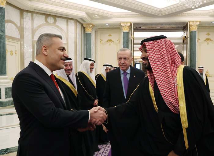 Cumhurbaşkanı Recep Tayyip Erdoğan, Suudi Arabistan ziyareti için bulunduğu Riyad'da Suudi Arabistan Veliaht Prensi Muhammed bin Selman ile bir araya geldi. Görüşmede Türkiye ile Suudi Arabistan ikili ilişkileri, enerji, savunma sanayii, yatırımlar, ticaret ve teknoloji alanında iş birliği, bölgesel ve küresel konular ele alındı. Ayrıca Cumhurbaşkanı Erdoğan görüşmede, Suriye'nin toprak bütünlüğünün korunmasının sadece Türkiye için değil, bütün bölge için de faydalı olacağını ifade etti.
