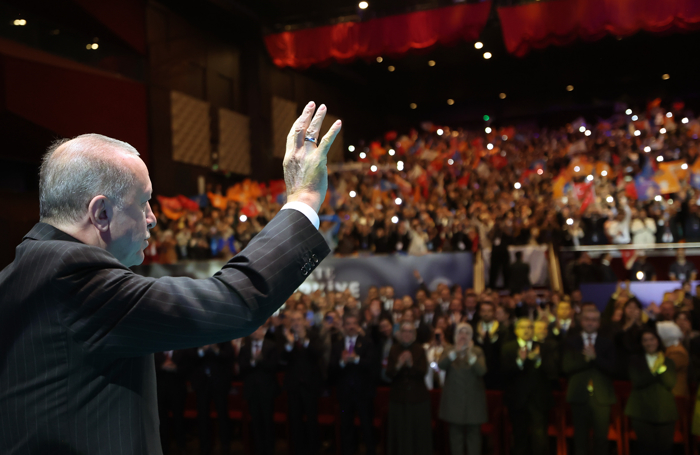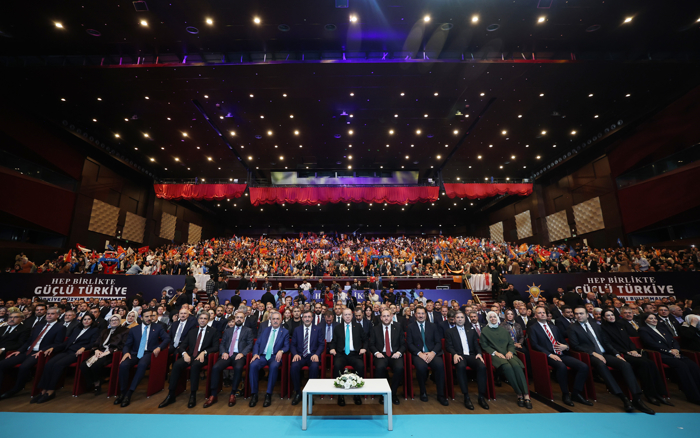 Cumhurbaşkanı Erdoğan, "Salonlara sığmayan şu coşkunuz için sizleri yürekten selamlıyorum. Şu anda bulunduğumuz yer, yerin altında 17 kat, 17 kat yerin altındayız. Belediye başkanlığım dönemimde burayı inşa ettik. Böyle bir salonu hazırladık. Yaparsa 'AK Parti yapar' dedik ve bu salonu inşa ettik."