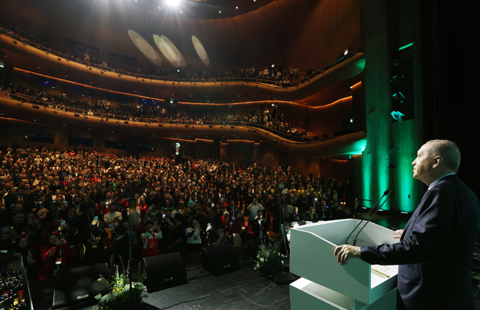 Cumhurbaşkanı Erdoğan, bir şeyi tüm samimiyetiyle ifade etmek istediğini aktararak, genç kardeşlerine bakınca sadece Türkiye'yi yeşertme ve yaşatma azmini değil, aynı zamanda kurdun, kuşun, dağın, taşın, havanın, suyun hakkını gözeten bir medeniyetin mirasçılarını gördüğünü dile getirdi.