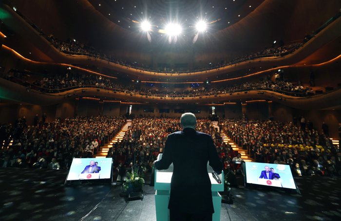 Gençlere bakınca tabiatla aynı dili konuşan bir hassasiyeti, özü, hakka ve hakikate giden bir inceliği gördüğünü anlatan Erdoğan, şunları kaydetti: