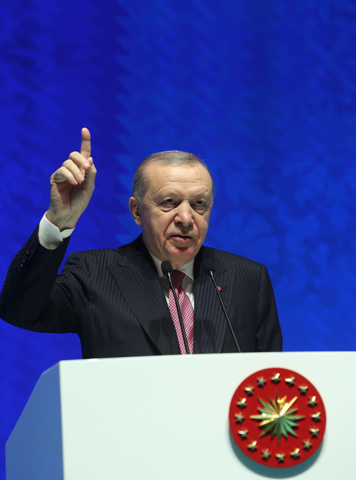 Çağın çok hızlı şekilde değiştiği, buna paralel olarak kültürün, geleneğin, kıymet atfedilen değerlerin de dönüştüğü, hatta tüm bunların kuşatma altına alındığı bir dönemde yaşandığını ifade eden Erdoğan, "Bilgi ve enformasyon geçmişte hiç olmadığı kadar hızla yayılıyor. Teknoloji ve dijitalleşme eski dönemlerle kıyas dahi kabul etmeyecek yeni imkanlar, yeni avantajlar sunuyor." dedi.