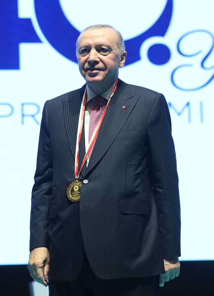 Cumhurbaşkanı Erdoğan'a, Kahraman tarafından Birlik Vakfı'nın 40'ncı yılı anısına "100 Yılın Devlet Başkanı Ödülü" verildi.