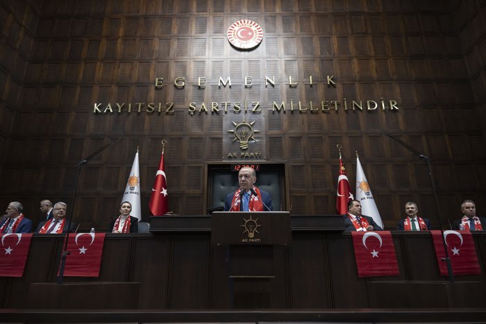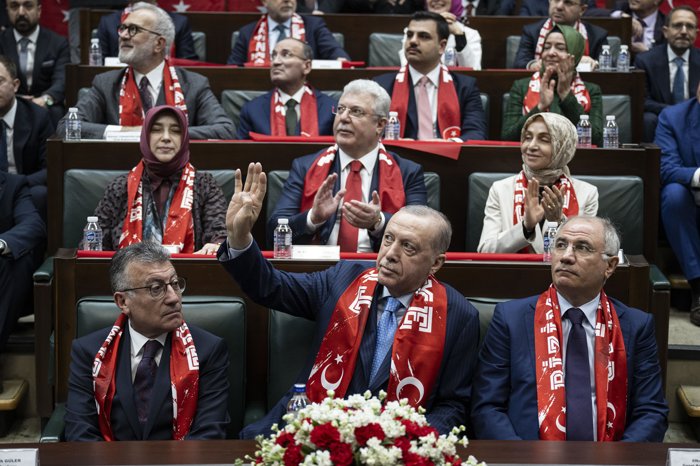 ABD/İsrail-İran savaşını anımsatan Erdoğan, "Bölgemizde 28 Şubat'ta başlayan ve birinci ayını dolduran savaş, tehdit ve tehlike düzeyini artırarak devam ediyor. Önceliğimiz ülkemizin bu fırtınalı dönemi kazasız belasız atlatmasıdır. Türkiye'yi bu yangının uzağında tutmakta kararlıyız. Hükümet olarak muhalefetin bizi çekmek istediği tuzaklara düşmeden, temkinli, itidalli, dengeli ve rasyonel bir zeminde bu süreci yönetiyoruz." diye konuştu.