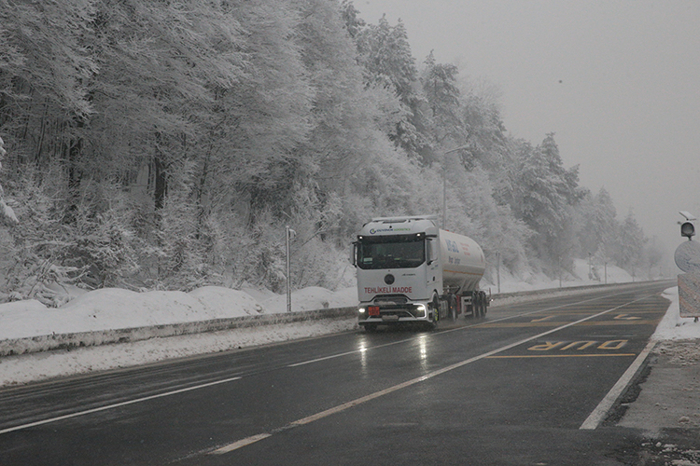 Ankara ile İstanbul arasında önemli geçiş güzergahlarından D-100 kara yolunun Bolu Dağı kesiminde kar etkili oluyor.