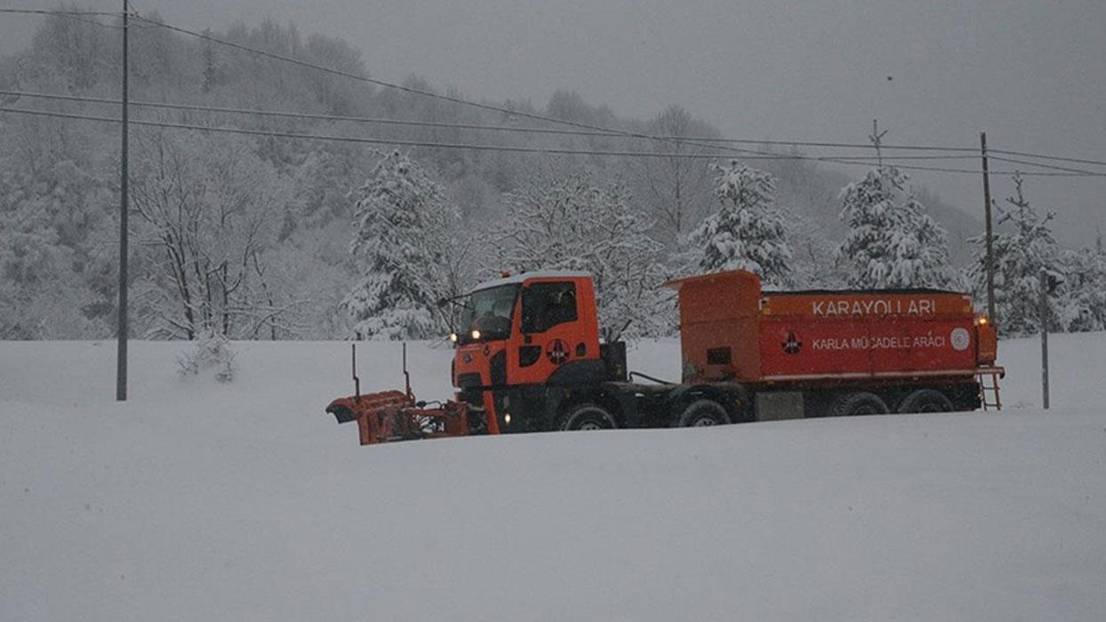 Karayolları ekipleri, güzergahta kar küreme ve tuzlama çalışması yürütüyor.