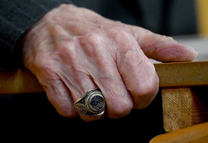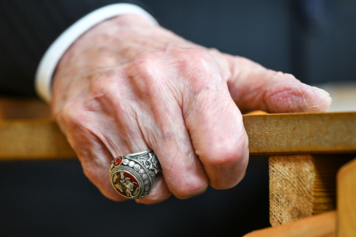 Öte yandan Bahçeli'nin, üst kısımda "Ya Fettah", sol yanında "Ya Şafi" ve sağ yanında "El Hafız" yazan yüzük ile "Ya Fettah" yazılı rozet taktığı görüldü.