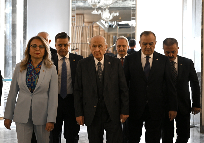 Ankara'dan dünyanın genel tablosuna baktıklarında ümitvar olacakları, memnuniyet duyacakları, yüreklere su serpecek bir aydınlık, bir arayış veya dört başı mamur bir amaç görmediklerini ifade eden Bahçeli, buna karşılık Türkiye'nin hem bölgesinde hem de küresel arenada "istikrar adası" gibi sivrildiğini söyledi.