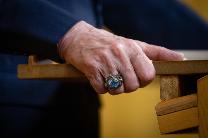 Öte yandan MHP Genel Başkanı Bahçeli'nin, etrafına Hoca Ahmet Yesevi'nin "Türklük kaderdir" sözünün yerleştirildiği, yanlarında Selçuklu kartalı ve Türk tamgalarının gravür tekniğiyle işlendiği yüzük ve onunla aynı konseptte hazırlanan rozet taktığı görüldü.