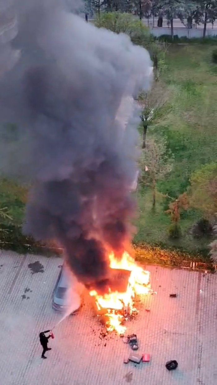 Diyarbakır'da bir sitede park halinde bulunan hafif ticari araçta yangın çıktı. Alevlerin metrelerce yükseldiği olayda binadakiler tedbir amaçlı tahliye edilirken, itfaiye ekipleri tarafından söndürülen yangın sonucu iki araçta büyük çapta hasar oluştu.