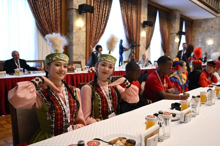 Kurtulmuş, törende, çeşitli ülkelerden gelen çocuklara hediyeler verdi. Ayrıca çocuklar da Kurtulmuş'a ülkelerinden getirdikleri geleneksel hediyeleri takdim etti.