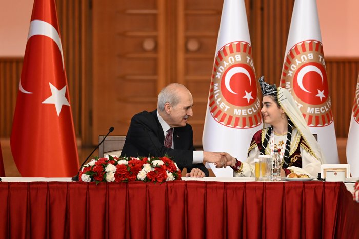 Törenin ardından Kurtulmuş, yöresel kıyafetleriyle Meclis'e gelen çocuklarla Şeref Kapısı merdivenlerinde fotoğraf çektirdi.