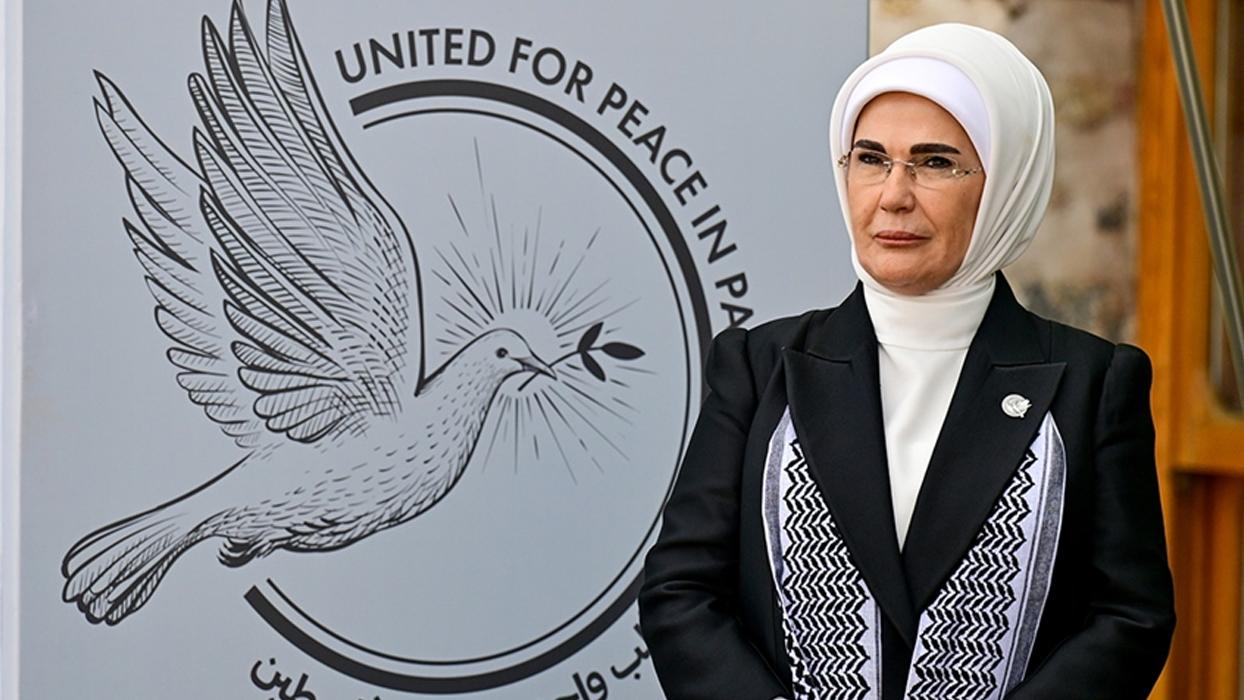 Emine Erdoğan, Filistin'de kalıcı ve sürdürülebilir barış için iki devletli çözümün bir an önce hayata geçirilmesinin ve Filistin Devleti'ni resmen tanıyan ülkelerin sayısının artmasının önemini dile getirdi.