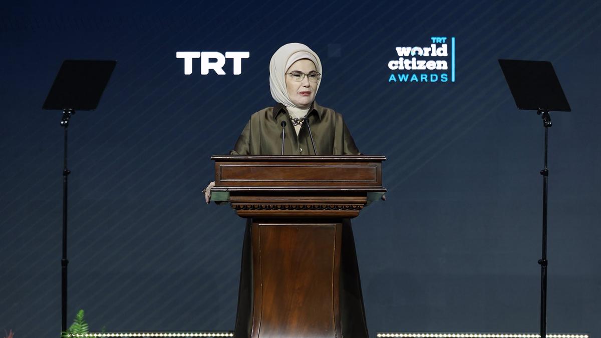Emine Erdoğan, "Pozitif Değişime İlham Olmak" ilkesiyle düzenlenen "TRT World Citizen Awards" programında yaptığı konuşmada, insaniyetin bir dili, rengi ve coğrafyası olmadığını hatırlatan çok özel bir buluşma için bir arada olduklarını söyledi.