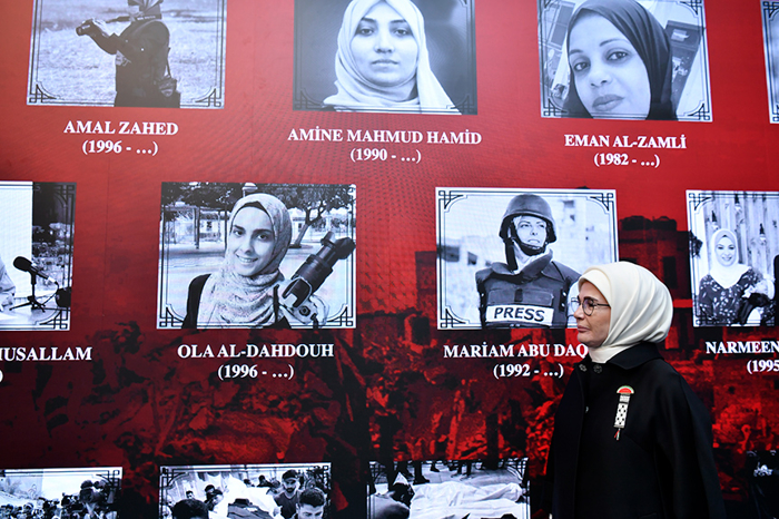 Emine Erdoğan, İsrail'in 2 yılda yaklaşık 300 gazeteciyi katlettiğini anımsatarak, bunların 37'sinin kadın olduğunu aktardı.