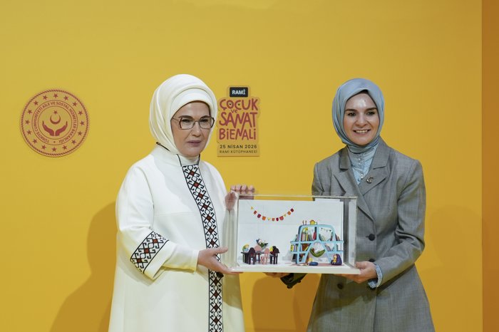 Emine Erdoğan, Aile ve Sosyal Hizmetler Bakanlığı himayelerinde Kültür ve Turizm Bakanlığı ev sahipliğinde Rami Kütüphanesi'nde düzenlenen Rami Çocuk ve Sanat Bienali'nin açılışına katıldı.