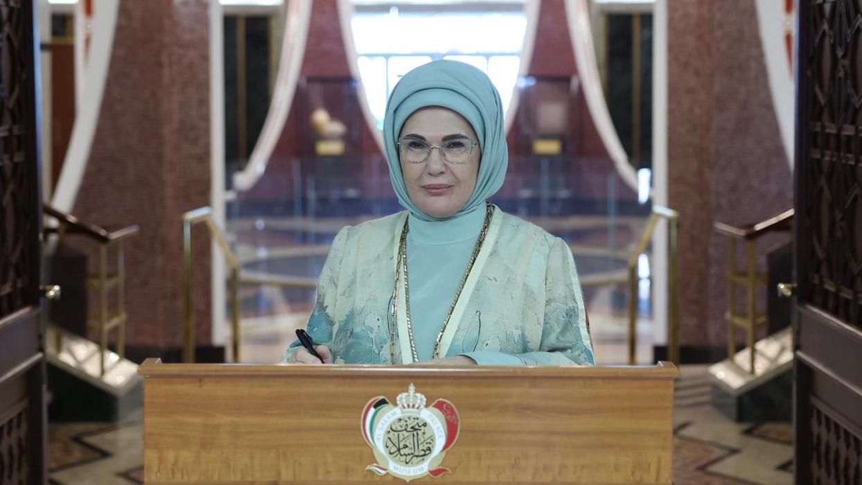 Resmi temaslarda bulunmak üzere Kuveyt'e gelen Cumhurbaşkanı Recep Tayyip Erdoğan'a eşlik eden Emine Erdoğan, ülkedeki programları kapsamında Al Salam Sarayı'na geldi.