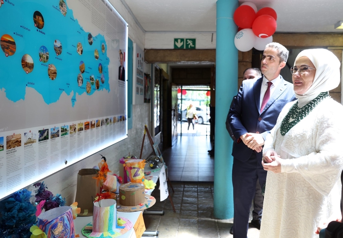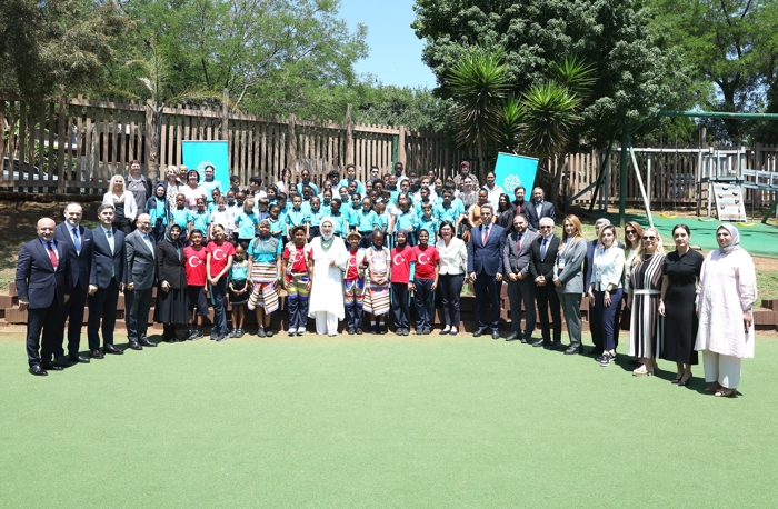 Türkiye Maarif Vakfı'nın Uluslararası Maarif Okulu'nu ziyaret eden Emine Erdoğan, okula gelişinde Maarif Vakfı Güney Afrika Ülke Temsilcisi Abdullah Cevizci ve öğretmenler tarafından karşılandı.