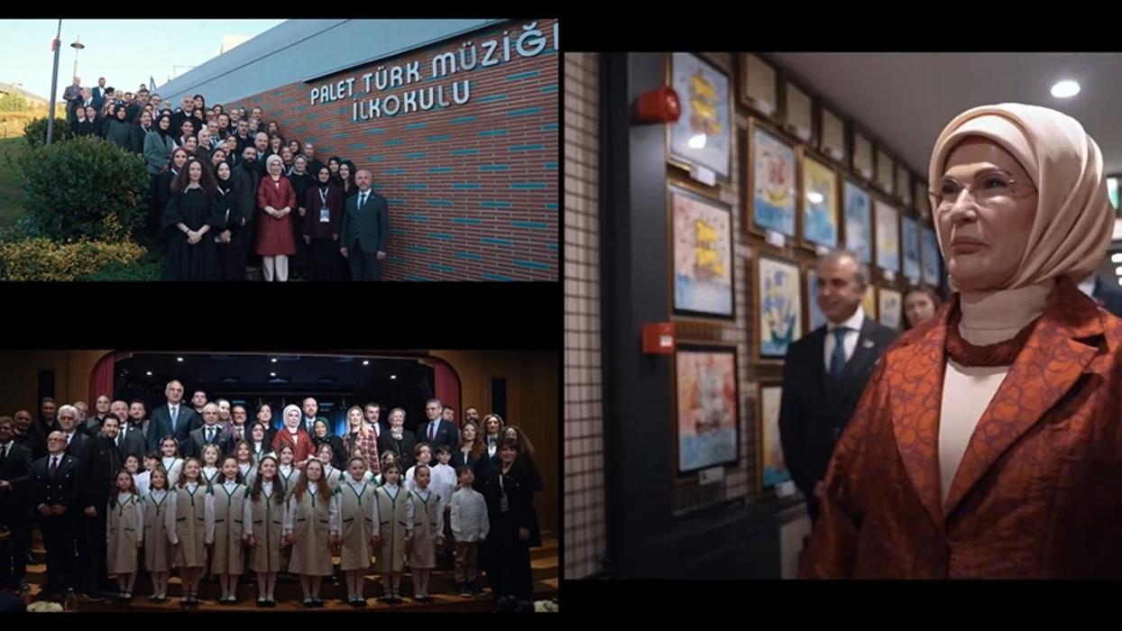 Emine Erdoğan NSosyal hesabından yaptığı paylaşımda, "Palet Türk Müziği İlkokulunun, Türk müziğine yürekten bağlı nice evladımız için ilham, umut ve istikamet olmaya devam etmesini diliyorum. Geleneği yaşatan, geleceği yeşerten bu güzel emek, gönülden gönüle çoğalsın." ifadelerine yer verdi.